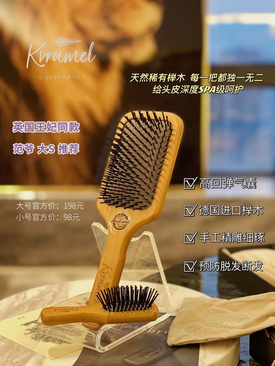 美(měi)國(guó)KRRAMEL棵沐忠于美(měi)式傳統高(gāo)端沐浴産品,氣囊梳作(zuò)為(wèi)N0.1 的(de)明(míng)星單品受∑得(de)無限好(hǎo)評!戴安娜王妃同款梳子(zǐ),大(dà)S,範冰冰等衆多(duō)明(míng)星力薦好(hǎo)物(wβù),名副其實被稱為(wèi)氣囊梳中的(de)愛(ài)馬仕